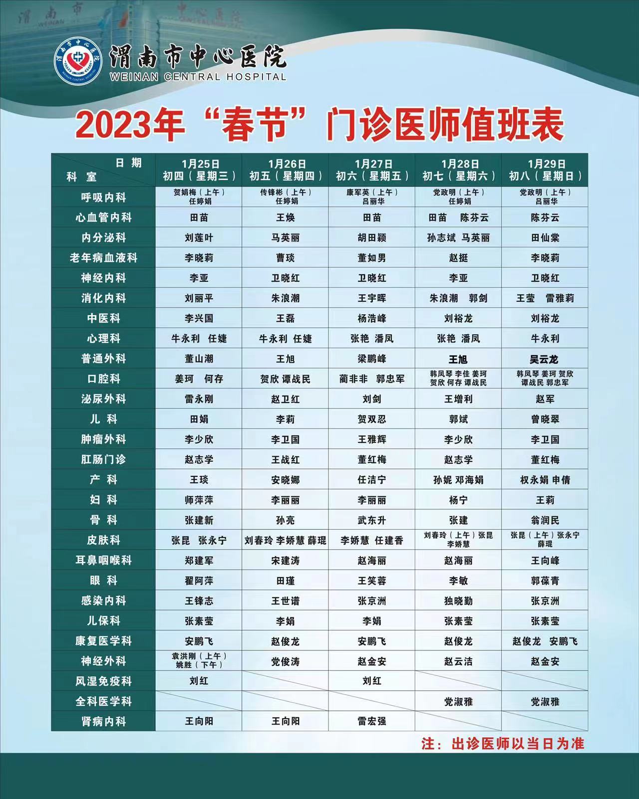 根据国家法定节假日放假安排,结合广大患者就医需求,现将我院2023年春节门诊工作安排如下: