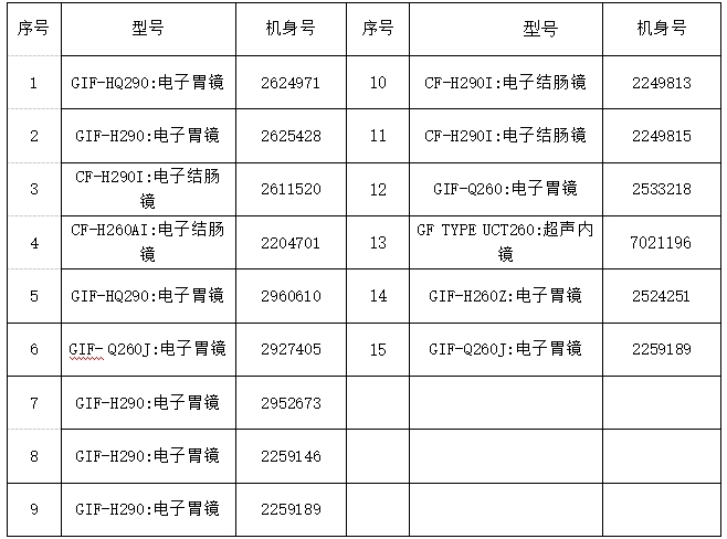我院现有一批奥林巴斯胃肠镜,现对其维保项目进行公开市场调查。项目共计奥林巴斯15条胃肠镜,其中电子胃镜10条、电子结肠镜4条、超声内镜1条,保修一年、二年、三年维保方案。主要内容为设备的日常维修、维护、保养、检测等。要求保修期间确保设备开机率达到约定要求,维修质量达到使用要求。(咨询设备具体情况或到现场检查评估设备情况,可联系内镜中心09132168570)