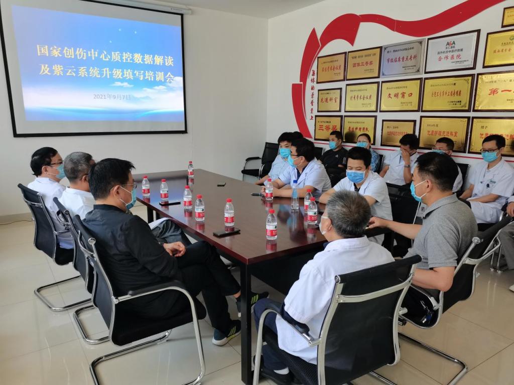 为了提高创伤中心数据填报质量,更好地形成数据监测机制,近日,市中心医院召开创伤质控数据解读及紫云系统升级填写培训会。创伤中心核心科室及相关科室人员参加会议,创伤中心主任范华杰主持会议。