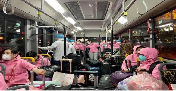 上海市政府人员接应医疗队前往居住地