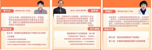 14日,会议邀请了北京大学第一医院李六亿主任、北京大学医学部蒋荣猛主任、云南省第一人民医院杨晋红主任,分别就《新冠肺炎疫情常态化下预检分诊与发热门诊管理》《新疫情形式下的院感管理》《常态化疫情防控下的感控》《多重耐药菌感染预防与控制制度》几个主题进行授课。