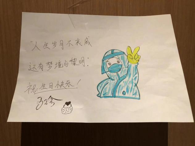 感动,让我热泪盈眶。在繁忙工作的同时,我也收到了科室主任及护士长的关心,电话里反复叮咛一定要做好防护,平安回来。巧遇我的生日,在现有的条件下,我感受到来自呼吸大家庭、党支部及队友们的关心和祝福。在我们的医疗队,很多队友都是党员,他们不怕苦,不怕难,有危险的病人总是冲在前面,彰显着一个共产党员的先锋作用。他们忘我付出、不计生死的精神感动着我,所以我也想成为他们那样的人。于是我也向医疗队党支部递交了入党申请书,我深知自己离党员的标准还有很大差距,但我愿意朝着这样的目标努力。