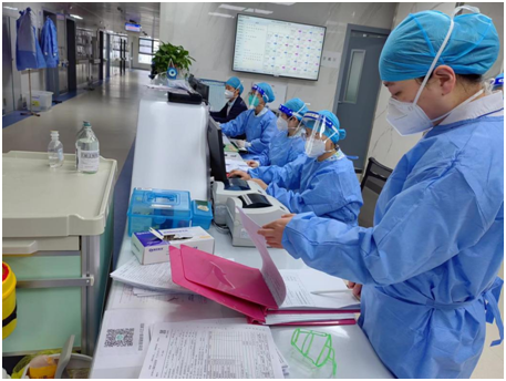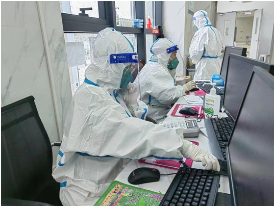 听从号令,冲在最前面,撑到极限也要咬牙坚持。护士长李美鸽昨天下午开始发烧,今天一大早就已到岗,她说,不管怎样,再难受也要来,要不心里不踏实。