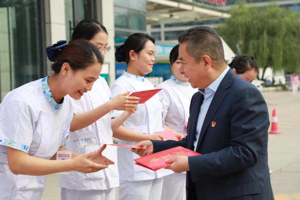 第112个国际护士节伴着五月的美好如期而至。5月12日上午,市卫健委党组书记、市中心医院党委书记张荣岗,党组成员、副主任徐萌新,中心医院院长乔梵及相关院领导和部分职能科室主任走访慰问奋战在一线的护理人员,送上诚挚的问候和满满的节日祝福。