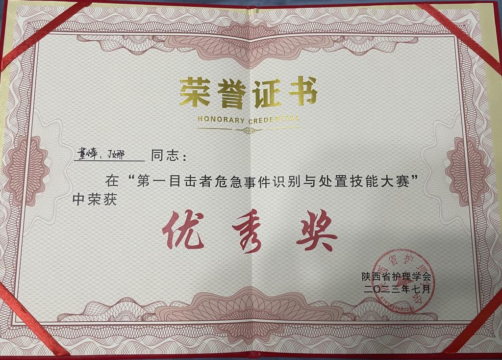 7月19日,陕西省护理学会主办“第一目击者危急事件识别和处置技能大赛”,急诊医学科护士董小萍、丁娜组队代表医院参赛,经历初赛、复赛、决赛多个环节后,综合现场37支参赛队成绩排名,最终荣获优秀奖。