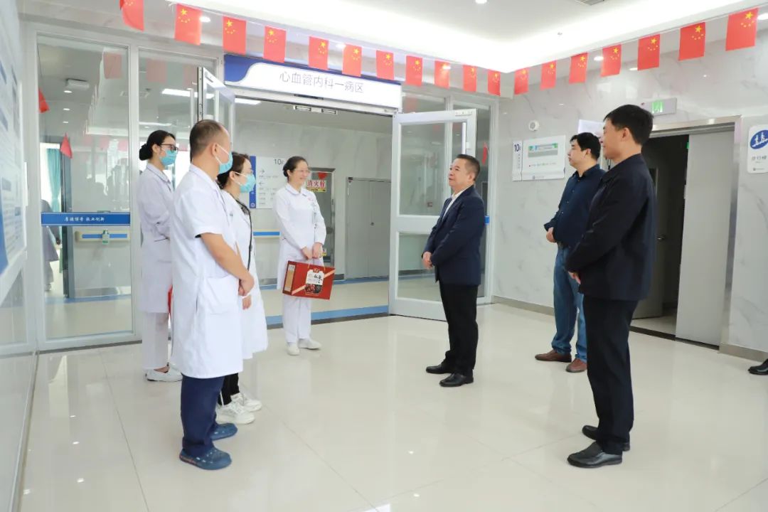 张荣岗一行来到急诊医学科、乐鱼在线登录入口、心血管内科,看望慰问了节日期间值守工作岗位的医务人员,详细询问他们的工作和生活情况,认真倾听他们遇到的问题和困难。张荣岗对一线医护人员辛勤付出和无私奉献给予充分肯定和赞赏,并送上了慰问礼品。