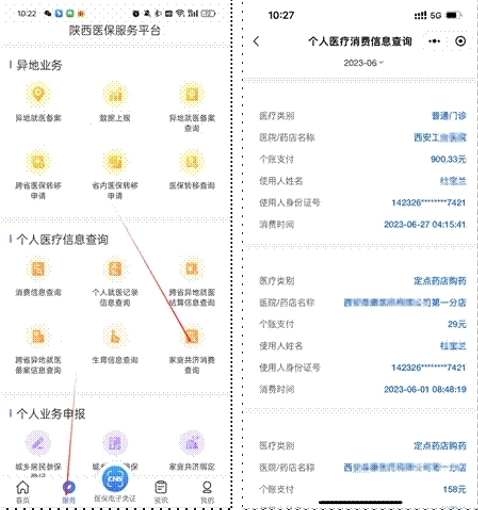 在“陕西医保”APP“服务”界面,选择家庭共济消费查询功能,授权者可查询到使用者的家庭共济消费情况。