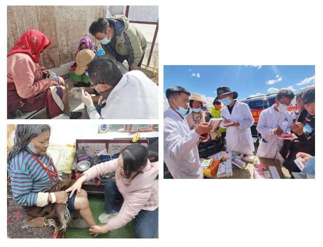 革吉县卫生健康委副主任赵培军、县人民医院副院长益西旺姆带队,市中心医院援藏医疗队联合联勤保障部队第967医院共10余人组成专家组。一周时间里,专家组驱车行程1500多公里,巡诊覆盖革吉县四乡一镇,组织大型义诊4场,接诊患者600多人次。他们为就诊群众测量血压、心电、血糖;为基层医务人员培训妇产、传染病、康复疼痛、消化病、创伤急救、包扎固定、心肺复苏等专业技能;深入乡村、寺院、群众家里送医送药;指导与完成膝关节退行性变关节腔内注射改良消炎镇痛针20余例。