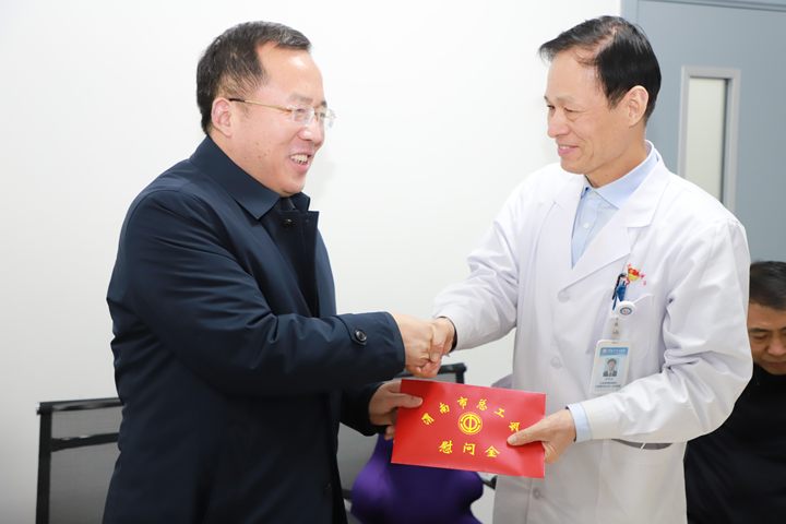 1月15日,市人大常委会副主任、市总工会主席薛清军,市总工会党组书记、常务副主席田芳一行来到市中心医院,慰问全国先进工作者、心血管内科主任李军农及坚守在一线岗位的医务人员。医院党委书记易新松、院长乔梵、工会主席郗旭燕参加。