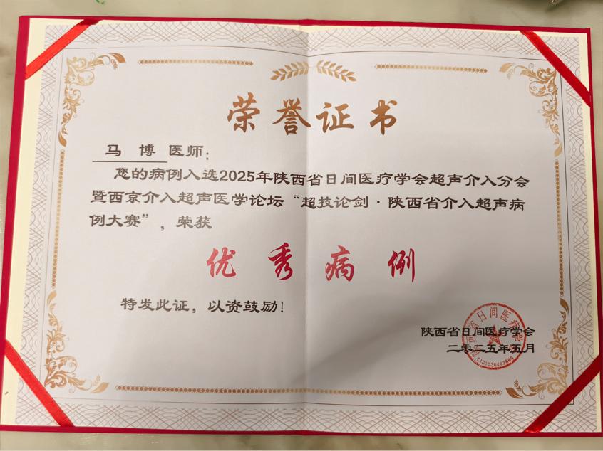 5月25日,在陕西省日间医疗学会超声介入分会年会暨第五届西京介入超声高峰论坛上,乐鱼在线登录入口超声医学科主治医师马博凭借病例《暗物质清除:CEUS引导下的淋巴暗黑歼灭战》诊疗成果,荣获大会“优秀病例奖”,研究成果同时入选大会专题壁报展示,彰显了医院在超声介入领域的技术领先性与临床创新力。