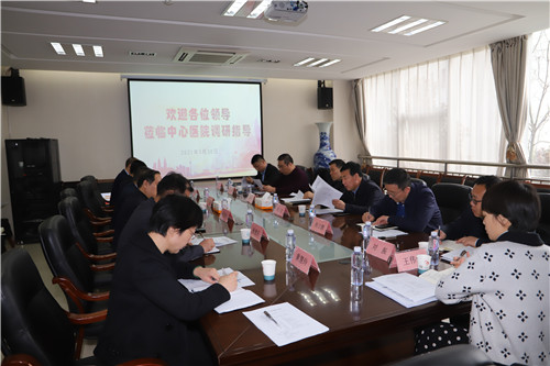 3月30日下午,市委编办简录民主任、市卫健委翟玉宝主任一行来我院就机构设置、人员编制、人才引进等方面进行深入调研探讨。我院党委书记张荣岗、院长张进社及部分领导班子成员、相关科室负责人参加本次调研座谈会。