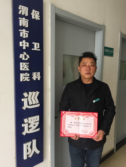 近日,渭南市公安局党委表彰了一批全市单位内部治安保卫组织和保卫人员,我院保卫科副科长杨峰榜上有名,荣获“2015年度内部保卫工作先进个人”称号。