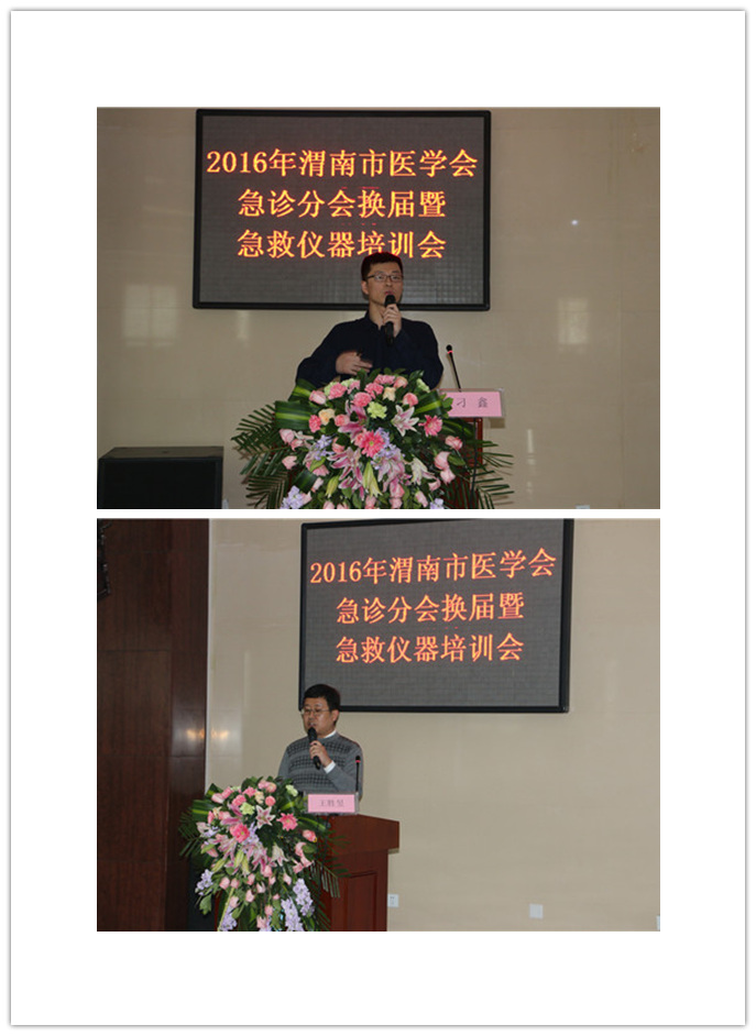 会议宣读了渭南市急诊分会换届委员名单。随后,陕西省人民医院第二临床部主任姬新才教授主讲了《心肺复苏之除颤仪的使用技巧》;西安医学院第一附属医院刁鑫的《机械通气模式与参数调节》;我院急诊科护士长副主任护师穆晓红的《抢救仪器维护与管理》;郭亚红主治医师的《机械通气患者氧合下降紧急处理》;陕西医学会麻醉分会青年委员雷育华的《气管插管规范化应用》分别给大家带来了精彩讲解,得到了参会人员的一致好评,纷纷建议多举办这样的培训。