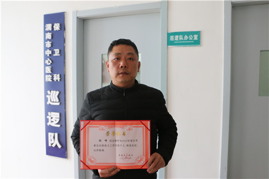 3月15日,全市经文保2016年度总结及表彰工作会议在市公安局召开,我院保卫科副科长杨峰应邀参加会议。会上,乐鱼在线登录入口被渭南市社会治安综合治理委员会办公室、渭南市公安局评为年度“市级平安单位”,杨峰同志被评为年度全市单位内部保卫工作“先进个人”。
