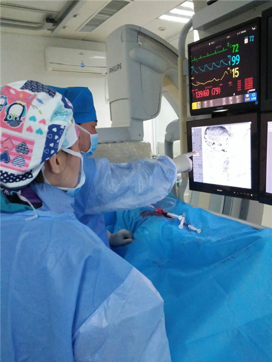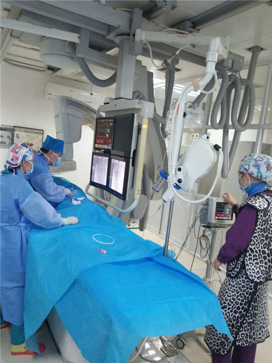 4月7日上午8时30分,介入科团队合作顺利完成一例巨大血管瘤介入栓塞治疗。