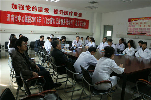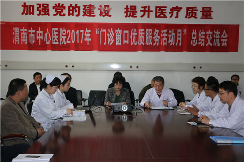 4月11日下午,在我院门诊部的组织下,召开“门诊窗口优质服务月”总结交流会,张进社院长、黄慧玲副院长及28个门诊窗口的负责人参加会议。门诊部主任张占安主持会议。