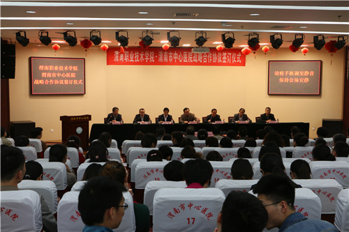 4月19日下午,我院与渭南职业技术学院签订战略合作协议。市卫计局党委书记、局长张拴劳,渭南职业技术学院院长张雄,我院张进社院长,党委书记鲁海燕及院领导,医院中层,行政人员及部分实习见习学生近200人参加会议。大会由鲁海燕书记主持。