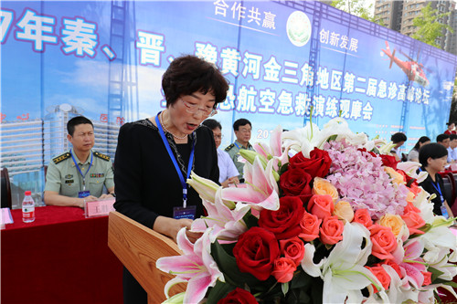 张进社院长对前来莅临观摩的各位领导、各位专家表示热烈的欢迎。他在致辞中讲到,航空急救的出现,作为一种新兴的急诊救援方式,其优势显著,反应迅速、机动灵活,复杂环境下能为患者争取更多宝贵的抢救时间,提供更专业的生命保障。此次反恐航空急救演练通过急救演练,展示航空救援优势的同时,也提升我市急诊救援水平,更促进黄河金三角地区医疗救援事业健康稳步发展。
