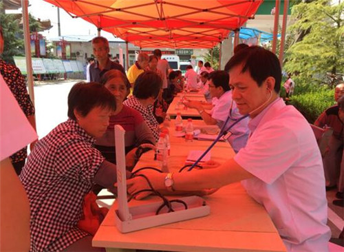 本次助力健康扶贫活动14:30分开始,许庄中心卫生院的医务人员为专家团队摆放好桌椅、血压计、听诊器等设施,闻讯前来健康咨询的村民络绎不绝。根据群众的求医诉求,工作人员有序引导他们前往各位专家义诊处就诊、咨询,期间免费为他们测血糖、量血压。专家们还对前来参加义诊村民们的日常保健、常见病、多发病的预防和常用药服用等方面进行了指导,让更多村民了解自身的健康状况,提高健康意识。