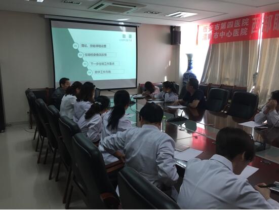 首先,科教科韩丕业干事对我院近期住培工作检查情况及今后工作思路作了汇报。他在汇报中指出,本次临床基地27个科室检查情况总体来说,各个科室在住培环节管理及质量评价方面较前有所提高,但细节方面仍存在不少问题。尤其是在学员临床综合能力评价方面情况较差,主要问题表现在病史采集不全面,查体顺序比较混乱和查体手法不规范,相关实验室检查分析能力、影像(X线、CT、MRI)阅片能力及临床思维能力较差。