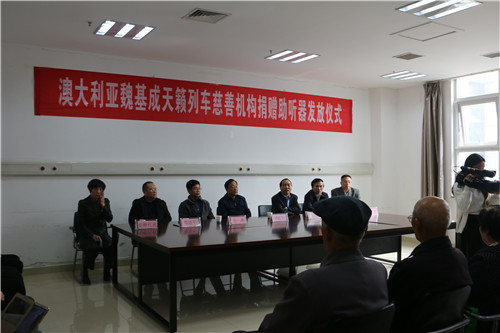 10月20日下午,市侨联代表澳大利亚魏基成天籁列车慈善机构助听器慈善捐赠仪式在我院举行。市侨联党组书记刘建军、秘书长岳森、联络科科长张县宁,我院张进社院长、乔梵副院长、耳鼻喉科主任郑建军及部分受赠代表参加了仪式。仪式由设备科副科长张军主持。