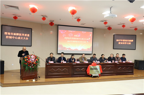 11月11日上午,渭南市麻醉医学质量控制中心成立仪式暨2017年麻醉新知识学习班在我院召开。空军军医大学口腔医院麻醉学教授徐礼鲜、陕西省人民医院麻醉科主任杨瑞、西安交通大学第一附属医院麻醉科副教授每晓鹏、我院焦建雄副院长、科教科主任周东升、麻醉手术科主任关新江等二百余人参加了会议。会议由关新江主任主持。