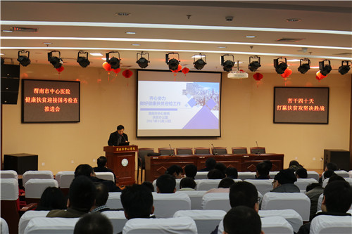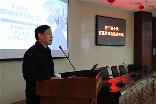 为了进一步推进我院健康扶贫工作,12月12日下午5时,在三楼学术报告厅召开了健康扶贫攻坚克难推进会。张进社院长、乔梵副院长、各临床科室主任及77名参与包联帮扶的医生共100余人参加了会议,主管院长乔梵主持会议。