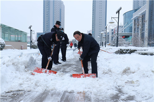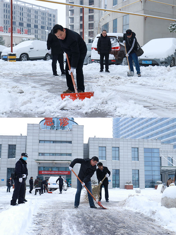 2018年的第一场雪在大家的期盼中飘然而至,使整个城市银装素裹。兴奋之余,厚厚的积雪和结冰的路面也给人们的出行带来了诸多不便。为保障患者就医安全,1月4日一大早,院领导带着行政、后勤的同志们在医院进行扫雪开路。