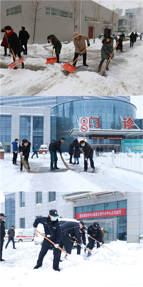 据悉,为了更好的服务患者,院领导在昨晚已经部署了医院的安全工作,号召行政后勤的同志们今早及时扫雪排障,全力保障患者就医安全。