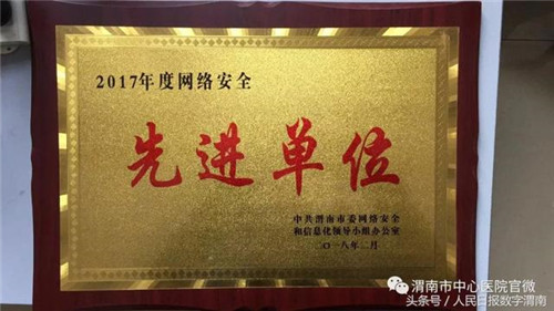 2017年,中心医院在中共渭南市委网络安全和信息化领导小组办公室的正确指导下,以医院信息化领导小组为核心,认真贯彻落实习近平总书记关于网络安全工作的重要指示,深入学习《中华人民共和国网络安全法》,积极推进等级保护工作,重点做好医院的网络安全建设,积极应对日益严峻的网络安全威胁,及时发现解决隐患,全年未发生任何信息网络安全事件,保障了医院信息系统安全、高效、平稳运行,确保患者的诊疗信息安全。