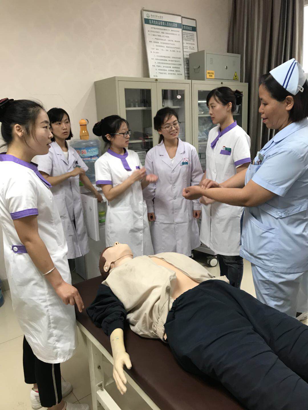 四月初,超声科邀请体检科的老师对全科人员进行了礼仪培训,要求人人熟悉,渗透到工作中去。四月底进行了突发事件应急处置能力的强化训练,同时,邀请急诊科穆晓红护士长进行指导考核。