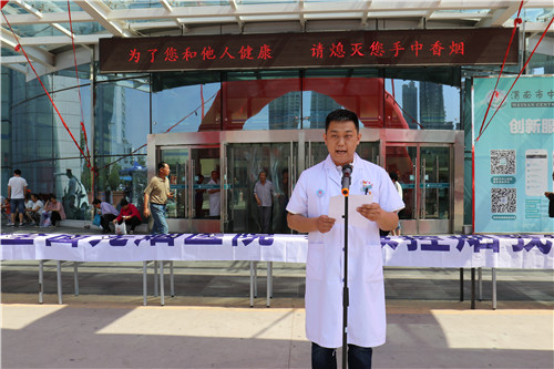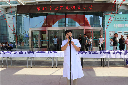 随后,呼吸内科副主任医师康军英向大家讲解了吸烟的危害并鼓励大家积极戒烟;神经外科医师赵云杰作为志愿者代表发起号召,希望每位志愿者积极投身于戒烟活动中。