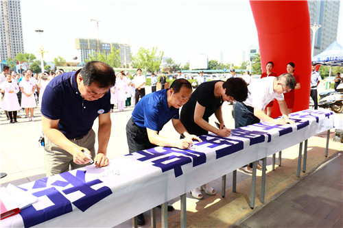 随后,监察科控烟志愿者田星带领大家宣誓,活动现场的领导和人员在横幅上郑重签下了自己的名字。