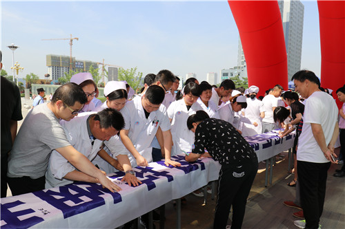 在启动仪式上,党委书记鲁海燕宣读控烟倡议书:为了保障患者能够享受到良好及舒适的就医环境,对于控烟工作我们义不容辞,我们将吹起“烟头革命”号角,积极开展工作。