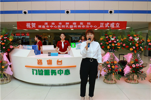 市中心医院病理科尹香利博士代表协作科室向渭南市肿瘤医院、乳腺疾病诊疗中心的成立热烈祝贺,表示肿瘤医院的成立能够解决肿瘤防控中存在的很多问题,为渭南市肿瘤患者精准医疗的实施提供良好的契机,并祝愿肿瘤医院开创新的一片天地。