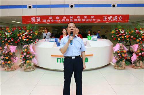 市中心医院张进社院长指出,肿瘤医院、乳腺疾病诊疗中心的成立标志着我院“一科两院七中心”建设工作取得阶段性成果。肿瘤医院要以此次成立为契机,以专科提升为重点,不断提高医疗水平和服务质量,同时要加强和上级医院的交流学习,并带动基层医院的专科发展,为提高渭南地区肿瘤疾病的诊治技术而努力,为健康渭南、健康中国努力!