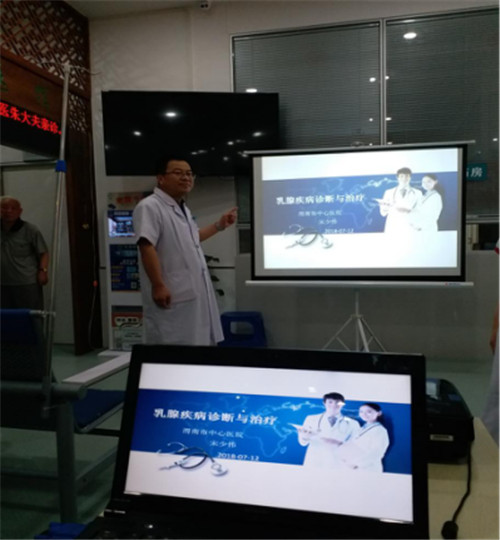 活动通过义诊咨询、深入普及乳腺疾病的预防、诊治、护理、保健知识。由乳腺疾病诊治中心宋少伟副主任医师以“乳腺疾病诊断与治疗”为主题的科普知识讲座,以通俗易懂、图文并茂、例举实例的形式普及乳腺疾病知识。通过健康知识的宣传,进一步提高对乳腺疾病的防治意识及预防水平。