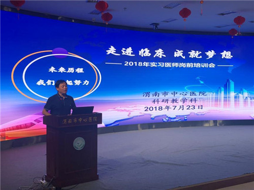 7月23日至26日,为了不影响大家正常的医疗工作,市中心医院科教科每晚7时至9时,在三楼学术报告厅为2018年度实习医师及转岗培训医师进行了岗前培训。科教科周东升主任主持培训并授课,来自临床医学、医学影像、医学检验、口腔、药学等专业的74名实习医师和12名转岗医师接受了培训。