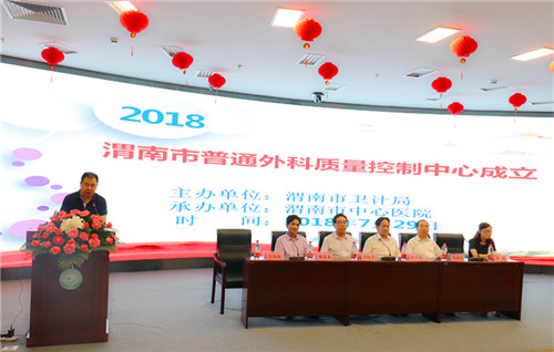 由渭南市卫计局主办,乐鱼在线登录入口承办的渭南市普通外科质量控制中心成立大会在市中心医院三楼报告厅如期举行。市卫计局副局长李晓平、市卫计局医政科科长李娟、市中心医院院长张进社、党委书记鲁海燕、副院长姚建龙应邀参会。会议由市中心医院党委书记鲁海燕主持。