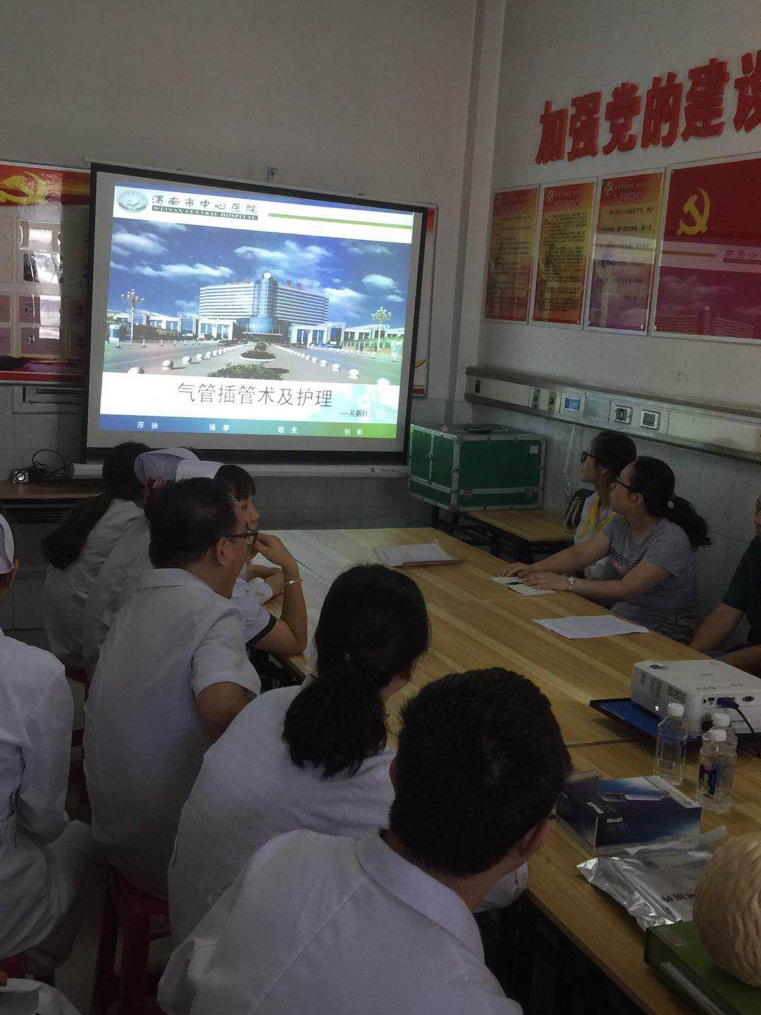 下午15时30分,大家汇聚在感染性疾病科六楼会议室。关新江主任强调了及时有效积极抢救是挽留患者生命的重要前提和保证。随后又用幽默风趣的语言,栩栩如生的比喻,活灵活现的举例向大家就气管插管的目的、方法、适应症与禁忌症、插管前准备、插管后护理及注意事项等进行了详细全面讲解。讲解完毕后亲自进行了模拟人气管插管的全过程演练操作,并对大家提出的问题进行了详细答复。
