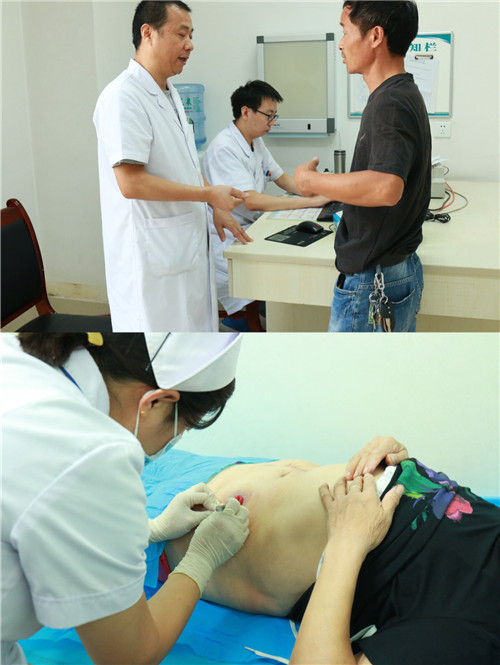 最后是义诊环节,由普通外科董山潮主任、史和平主任及伤口造口专科护士现场为有需求的造口患者进行身体检查、疾病知识讲解、造口护理,在交流过程中,一位老人家讲述了因造口长期间断出现肉芽肿备受困扰,不仅影响了正常生活,还给护理带来了极大困难,在详细询问病情及查看造口后,张少青护士长为她进行了造口的相关处理并制定了个性化解决方案,老人家非常满意。