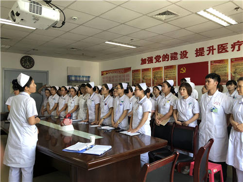 科护士长解明侠以“做一个有温度的护士”为主题的医学人文知识授课。在解老师授课时,开展“不忘初心,牢记使命”的主题教育,组织大家重温“南丁格尔”誓词,从当代名医的角度解读了医学人文知识的丰富内涵,并从理论和实践两方面培训了医学人文关怀的具体内容,包括良好的人文素养,对于从事护理工作的护士形成严谨求实、遵守纪律和技术过硬的工作作风起到重要促进作用。