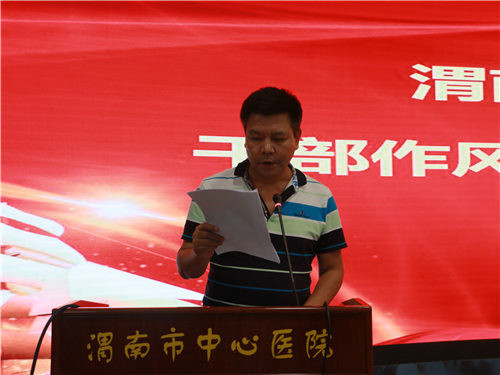 会上,纪委副书记谭村岗传达了《关于对全市干部作风排查整改工作发现有关问题的通报》渭市干作【2018】1号、3号、《市卫计局关于直属事业单位开展干部作风问题排查整改工作明察暗访和重点督查情况的通报》等文件,要求医院各支部、各科室加强工作纪律自查,完善相关资料,切实抓紧抓实此次活动。随后鲁书记宣读了《市直卫计系统干部纪律作风八条规定》,并联系实际讨论、制定了医院干部纪律作风八条规定。