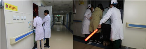 此次演练火场定于医院主楼15层眼科病区,疏散演练涉及火场楼层并联动上、下两层,主楼14层和15层共4个病区。同时为扩大此次演练的效果,动员14、15楼以外科室护士长在演练中担任角色。