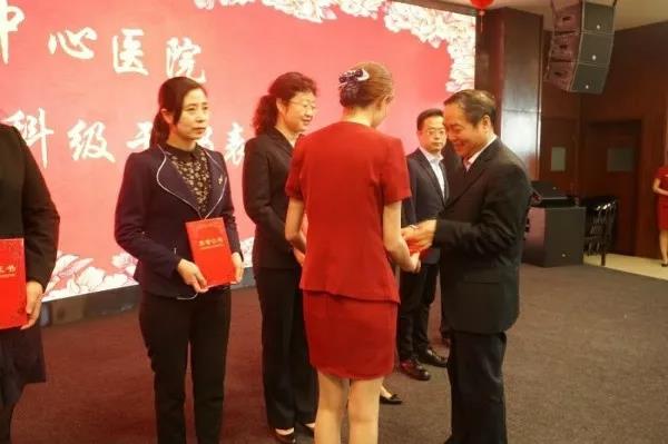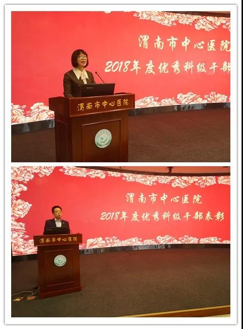 在欢快的乐曲和热烈的掌声中,院长张进社为受表彰的14位同志颁发了荣誉证书。同时,受到表彰的行政、临床、医技片区的优秀科级干部代表郗旭燕、李红兵、刘康分别发表了获奖感言和经验交流。