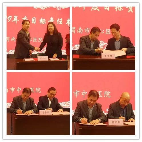 随后,大会举行2019年目标管理责任书签订仪式,党委书记鲁海燕分别和临床、医技科室代表负责人签订了2019年目标责任书。