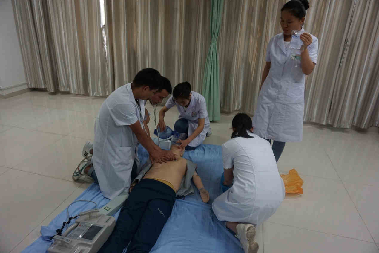 7月31日,乐鱼在线登录入口科研教学科在实践技能训练中心举行了2017级全科住培学员院前急救演练活动。科研教学科主任周东升、急诊急救中心主任王永升、全科医学科主任刘红、党淑雅担任考官。骨二科副主任党熙亮副主任医师、普外科侯峰强副主任医师、急诊科师资郭亚红、王二宁主治医师作为学员院前急救培训指导老师参加了演练活动。演练由科研教学科干事何博武主持。