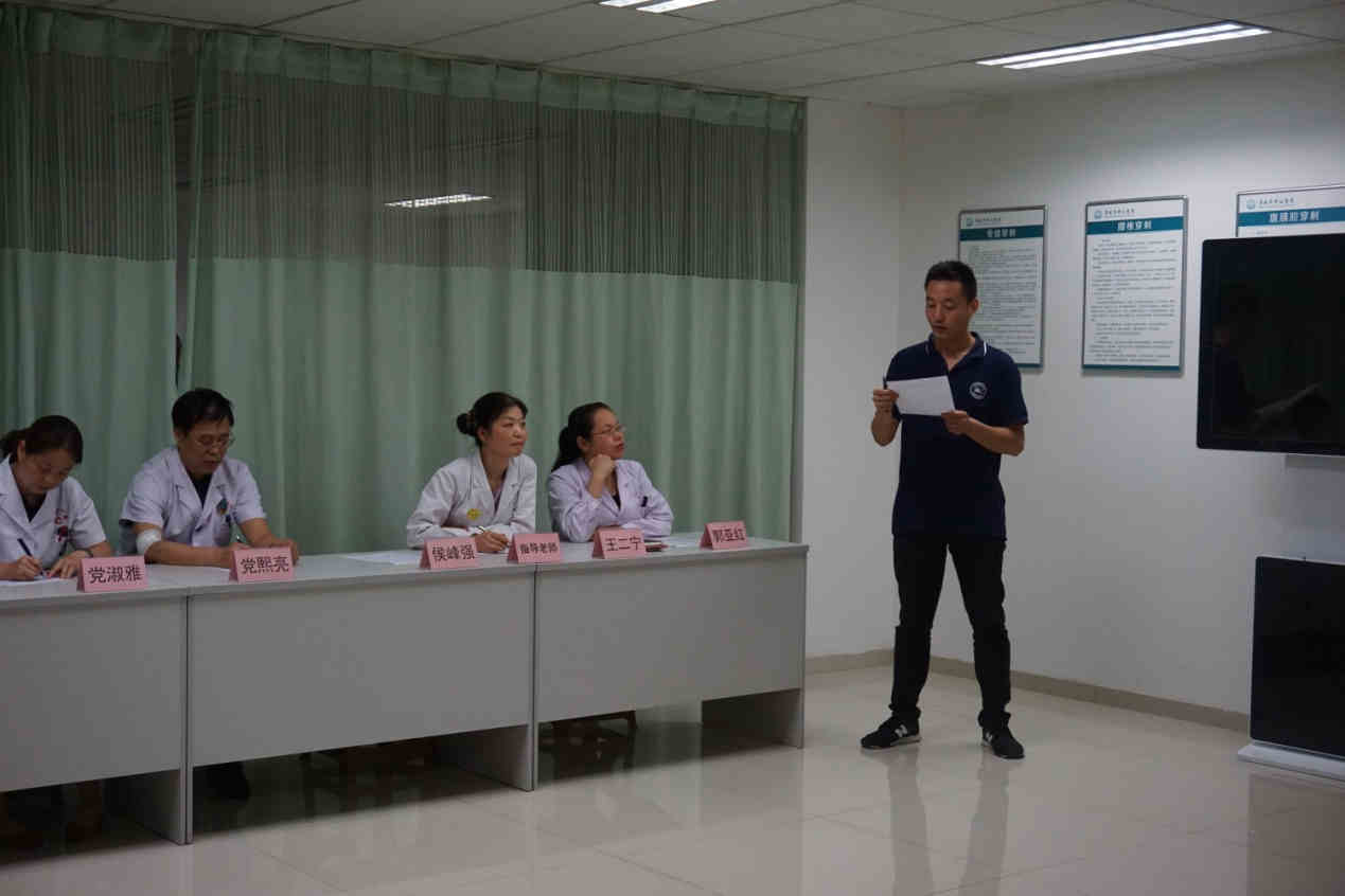 首先,乔梵副院长作演练前动员讲话。他指出,第一,院前急救是全科住培大纲要求掌握的内容,同时,也是乐鱼在线登录入口全科住培基地院级技能培训的基本内容。第二,经过科研教学科前期精心组织和策划,经过各位指导老师悉心指导和学员刻苦训练,相信本次院前急救演练一定会让每一位学员得到锻炼和提高。第三,要求演练考官组人员严格按照评价标准,圆满完成本次演练活动。第四,希望科研教学科和全科医学科在演练结束后要认真分析总结,以便于进一步提升基地住培教学水平。
