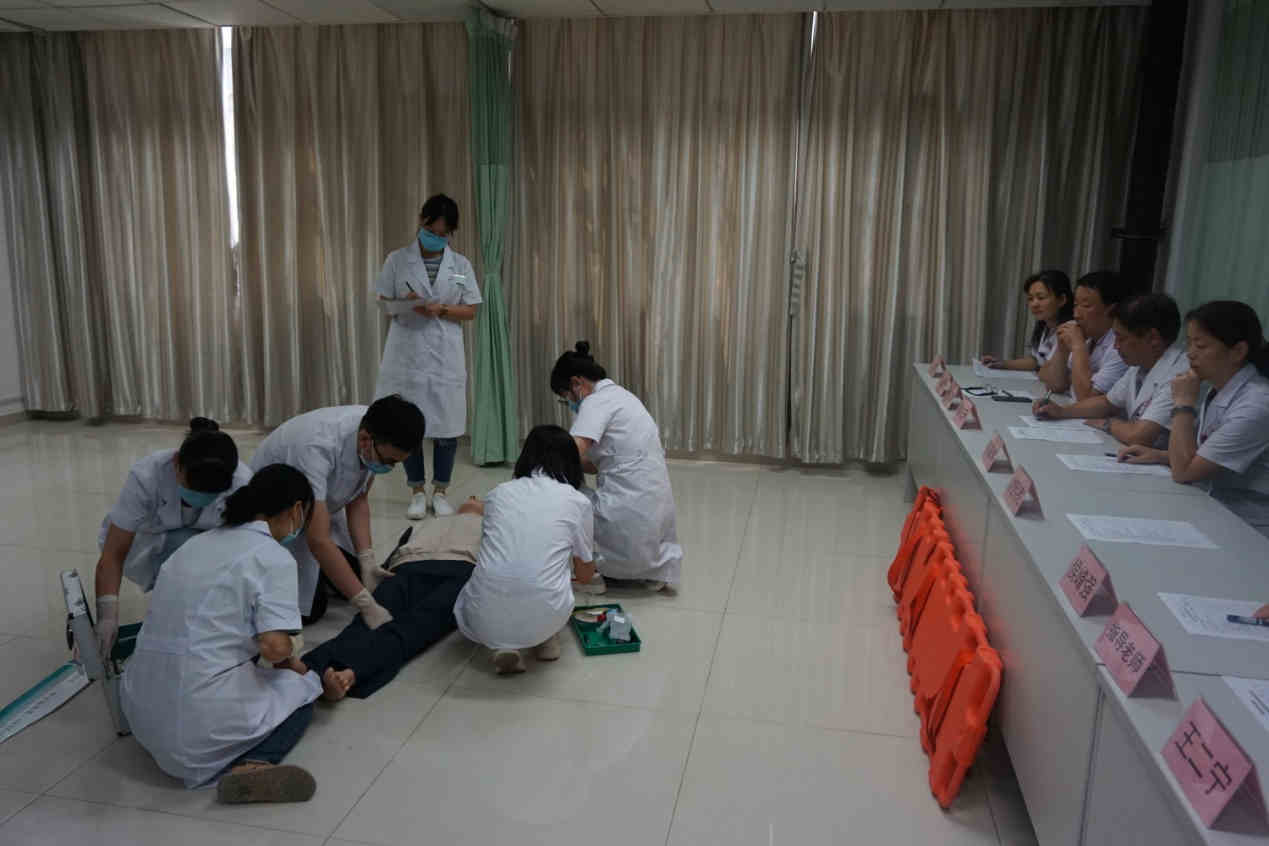 看似复杂紧急的抢救流程,在小组组长的指挥下,急救小组每位成员都能紧张有序、各司其职、娴熟操作和默契配合下顺利完成。