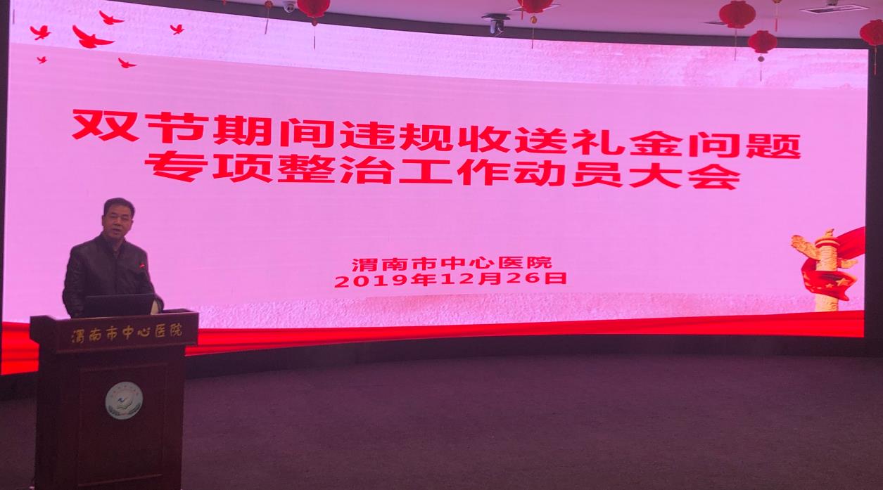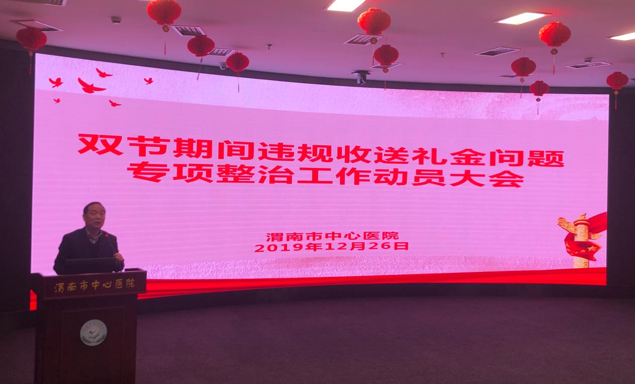 纪检委副书记谭村岗针对整治违规收送礼金专项活动进行动员,同时传达了《中共渭南市纪委监委派驻市卫健委纪检监察组关于强化元旦春节期间严肃整治“四风”问题的通知》《中央纪委监委对169起违规收送礼品礼金问题的分析》《中共渭南市纪委监委派驻市卫健委纪检监察组关于在元旦春节期间开展深化违规收送礼金问题专项整治工作实施方案的通知》,并指出院内通过预先组织、提醒督促院内人员廉洁、自律。